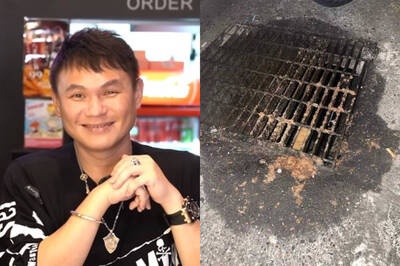 Toyz(左)日前赴網紅超哥創立的「超派炸雞」試吃,意外直擊炸雞店員工疑將廢油倒入水溝。(翻攝自YT)