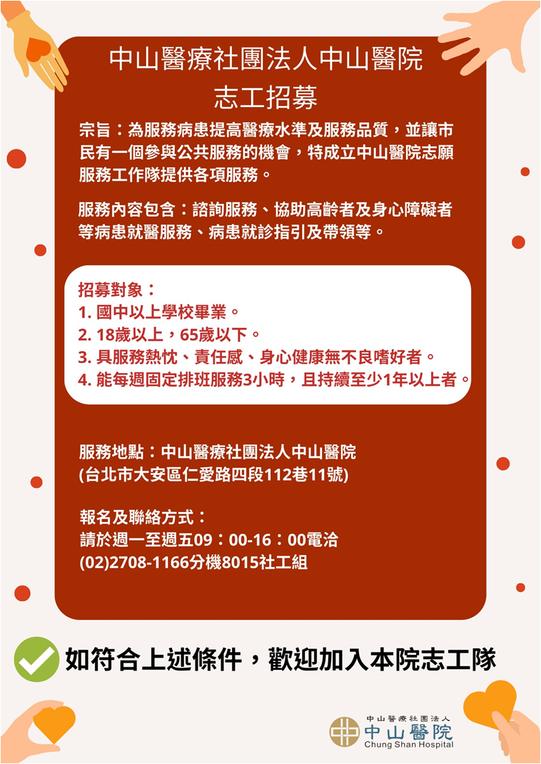 本院招募志工,有興趣者,請踴躍參加!
